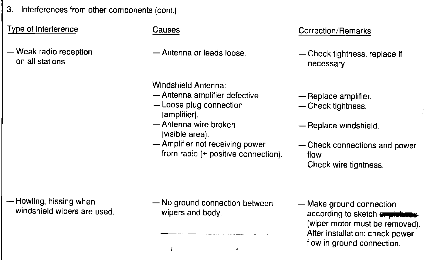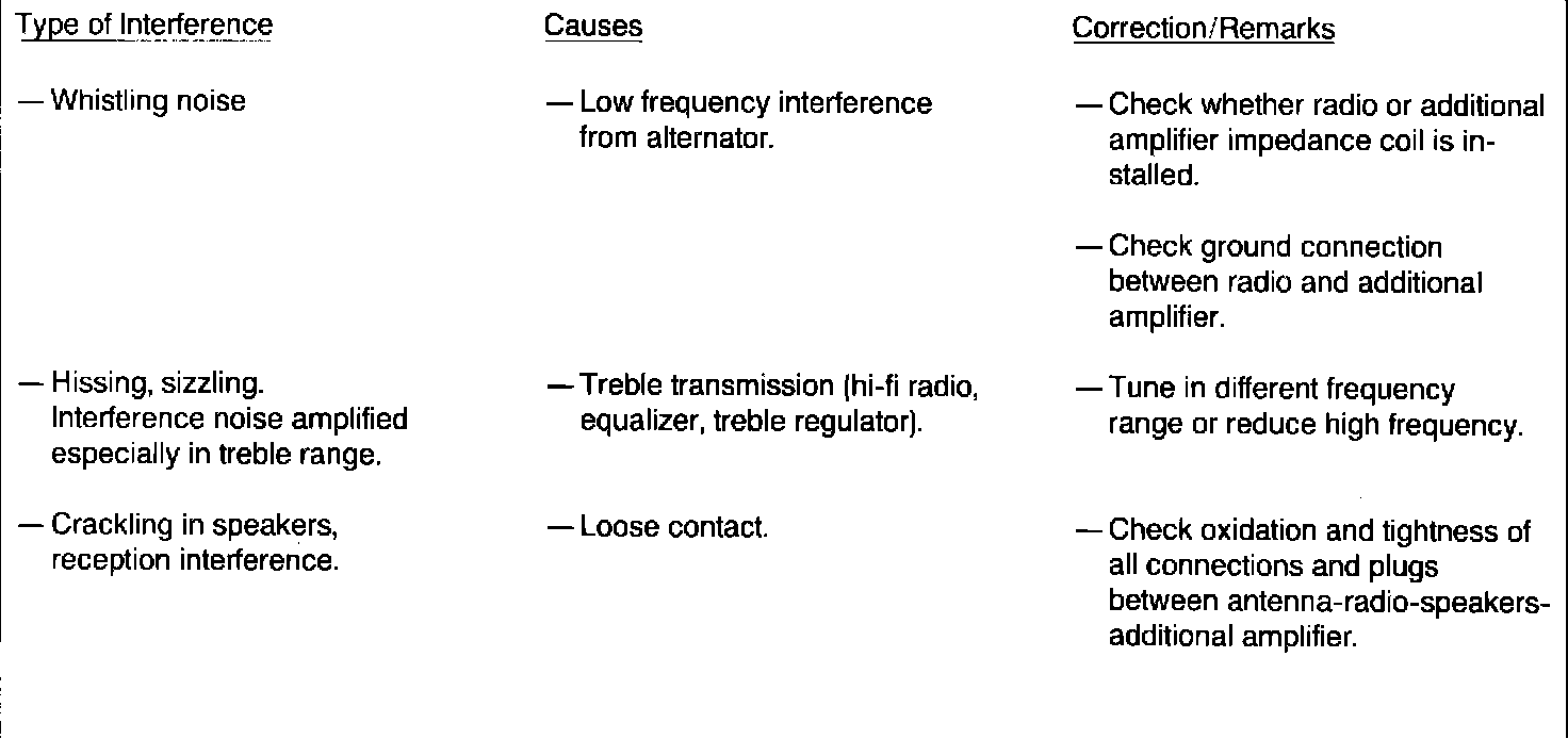 Radio interference complaints may be caused by either external factors, vehicle components, or radio system failure. Therefore, a clear differentiation must be made between these areas of possible problems.