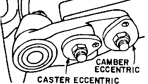 Caster and camber on vehicles w/steel joint carrier is adjusted in same way, but location of caster and camber eccentrics are opposite those shown in Fig. 3.