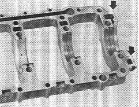 1. Coat lower crankcase section with Loctite 574 in areas of oil intake and sealing surface in areas of flywheel.