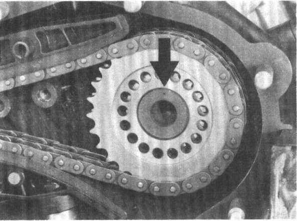 3. Turn the crankshaft slowly in the sense of rotation keeping the chain tensioned.