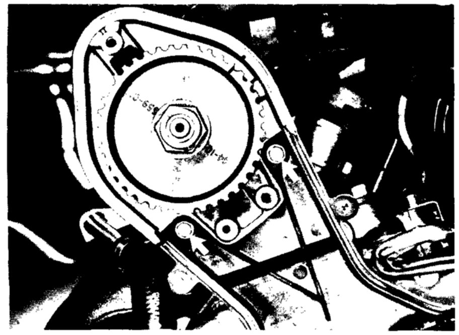 9. Slacken belt tension and pull camshaft belt off of camshaft sprocket, Timing Belt.