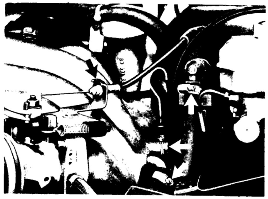 16. Remove intake manifold by dismantling holder on oil dipstick tube, hose on brake booster, hose on intake distributor, retaining clamp on accelerator cable, and mounting bolts of intake distributor/cylinder head.