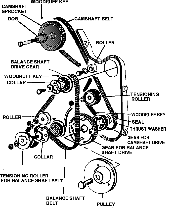 - Ensure alignment of balance shaft marks. Install balance shaft belt.