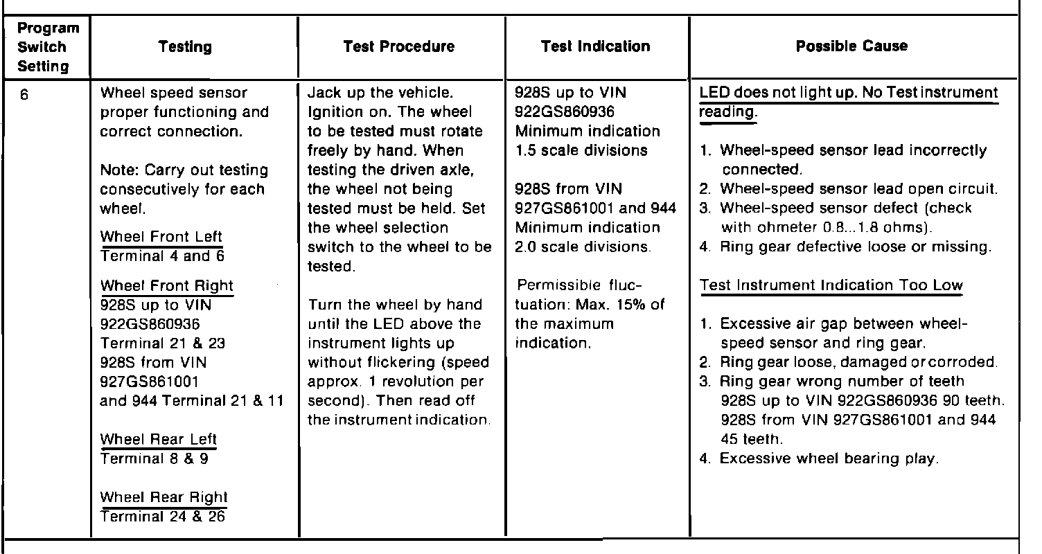 ABS Test Procedure" (order number PNA 000 042) utilizing the Bosch ABS 2 LED Tester. Test point 6 is incomplete. Update as follows: