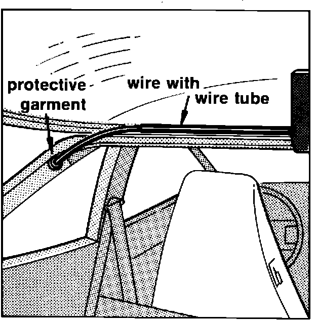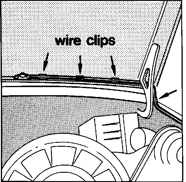 2. Guide wiring through grommet for rear wiper wiring. Use new protective grommet Part Number 111 971 911A. Push wiring through C-pillar and tighten with wire ties underneath ventilation slots.