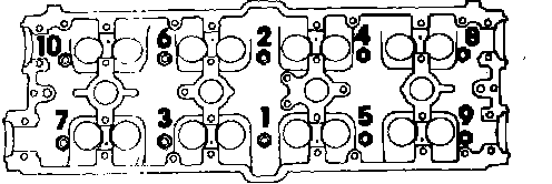 2. Remove cylinder head attaching bolts in reverse order of tightening sequence, Fig. 19, then the cylinder head.