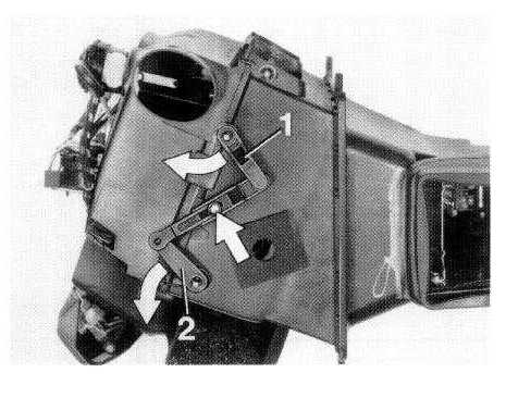 5. Press lever 1 forward and lever 2 down as far as possible. Retighten securing screw.