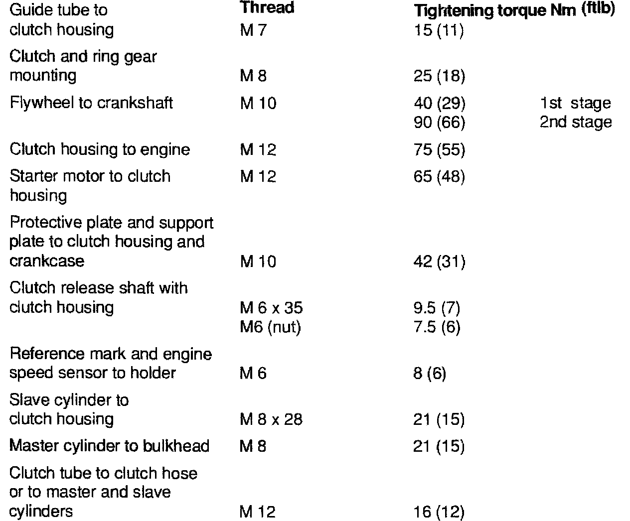 Clutch Tightening Torque: