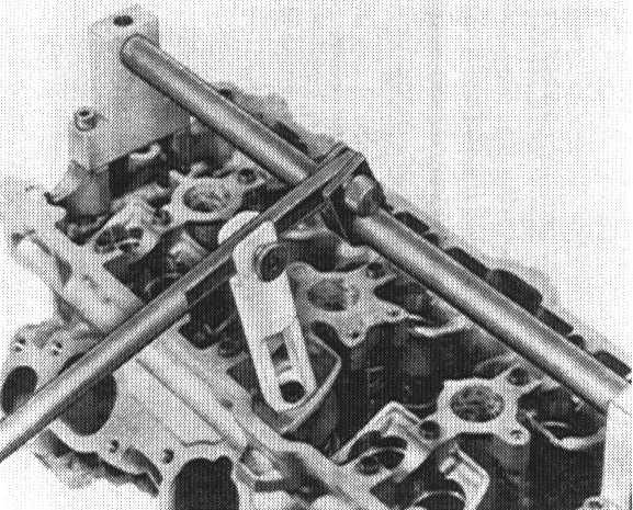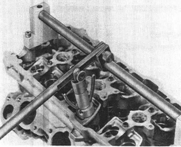 1. Mount the assembly bridge on the cylinder head. Secure the cylinder head to the work bench with a screw clamp to prevent tilting.
