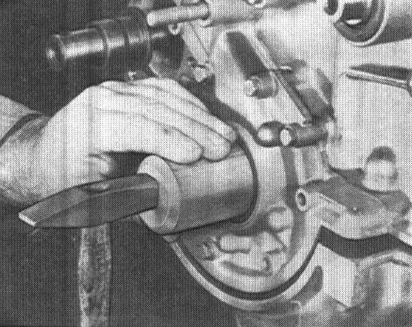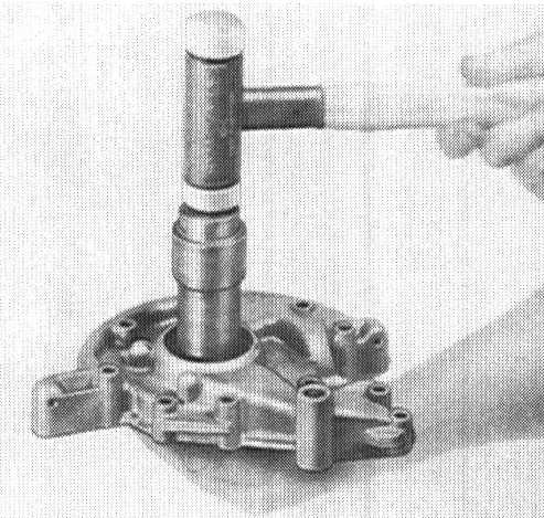 Apply toothed sleeve on sealing lip and seal simultaneously and drive in with Special Tool 10 - 203 (only outer part).