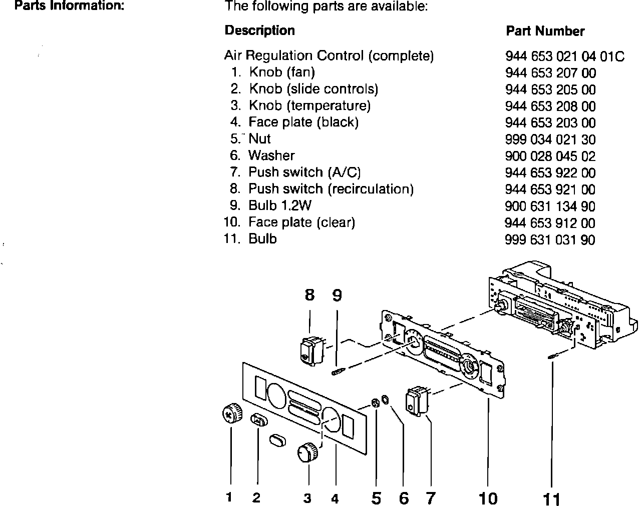 Parts Information: