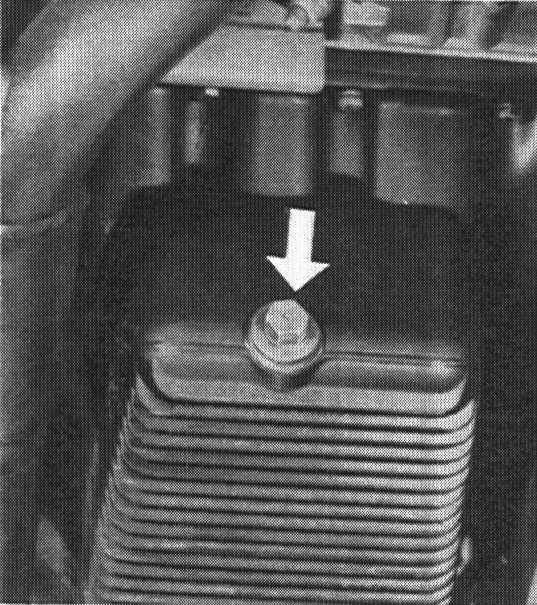 2. Unscrew oil drain plug from oil pan and drain engine oil.