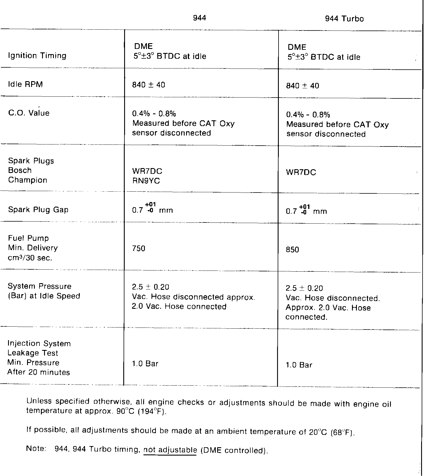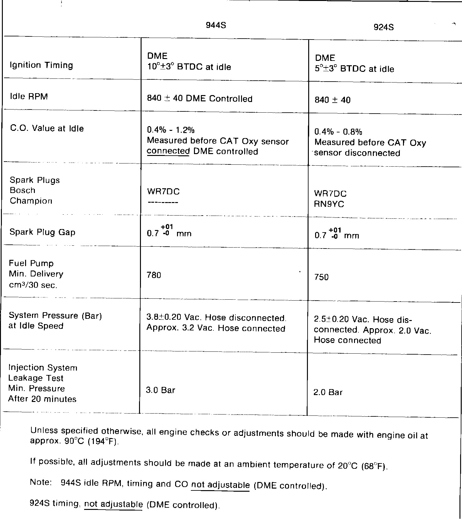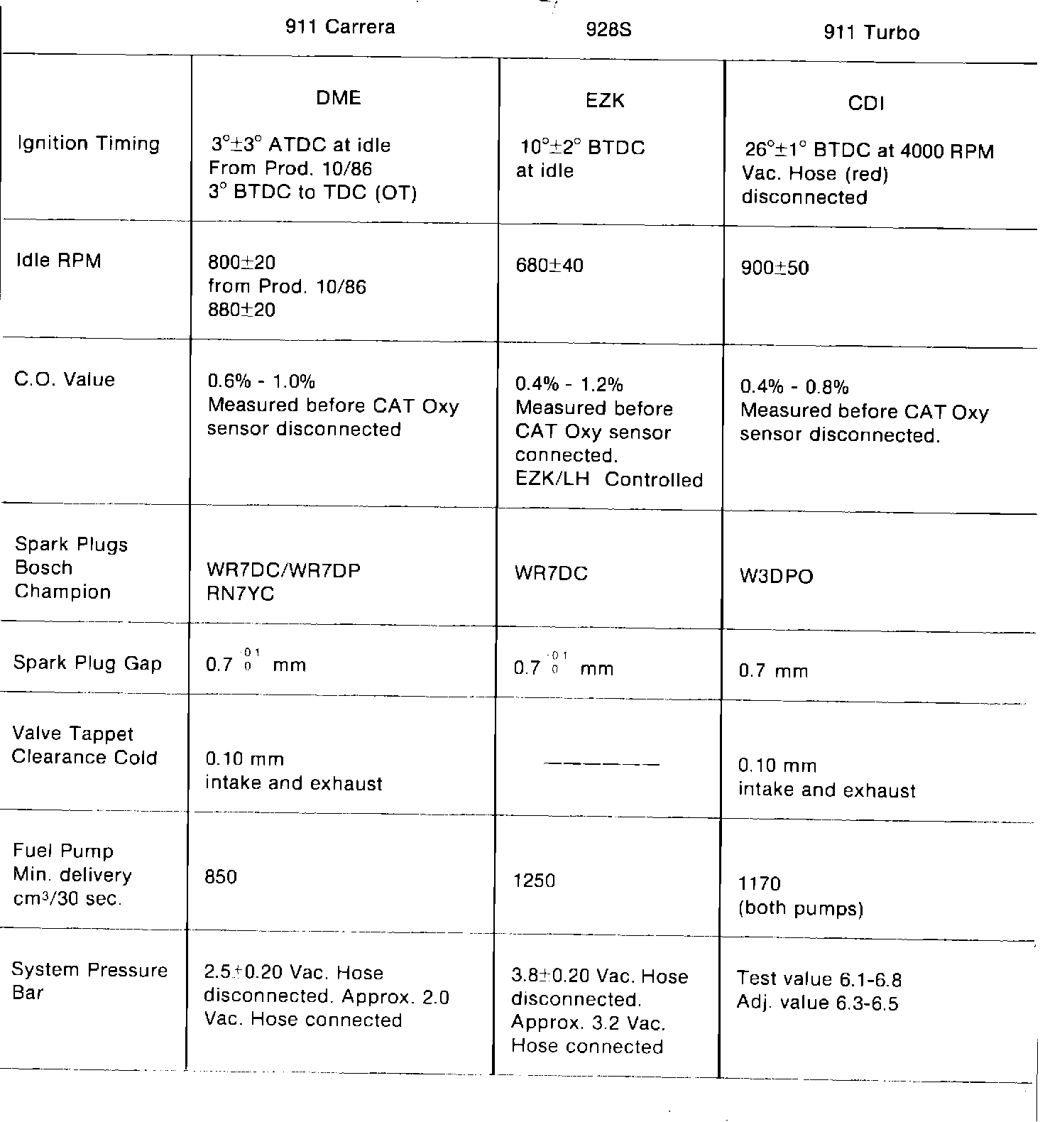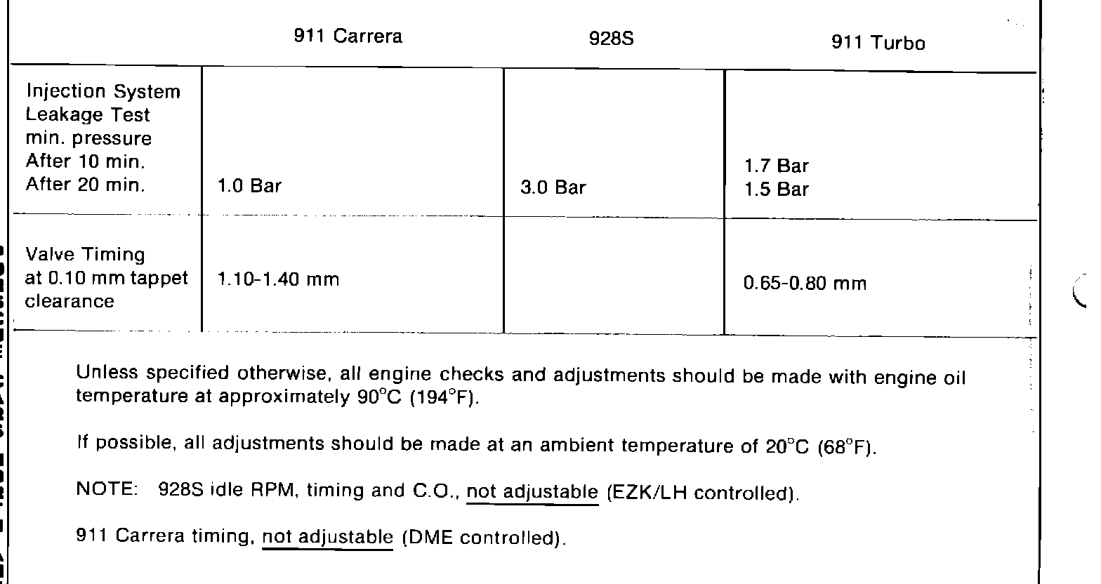 Engine Performance - Tune Up Specifications