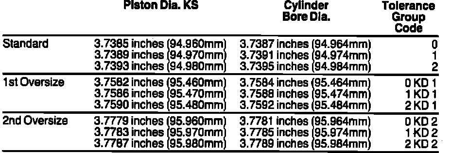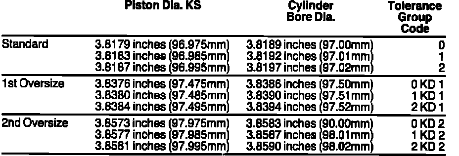 standard and oversize. Different tolerance groups can be used in the same engine.