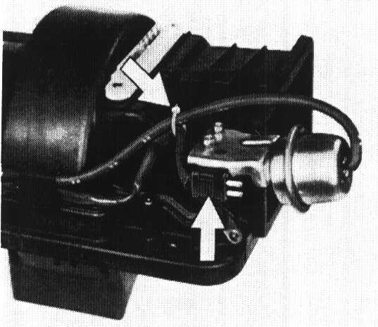 4. Lift fresh air blower slightly. Pull off inner vacuum line.