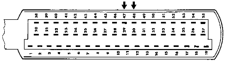 - Connect the positive tester lead via a test lead to the control unit plug terminal 47 and the negative tester lead via a test lead to control unit plug 48.