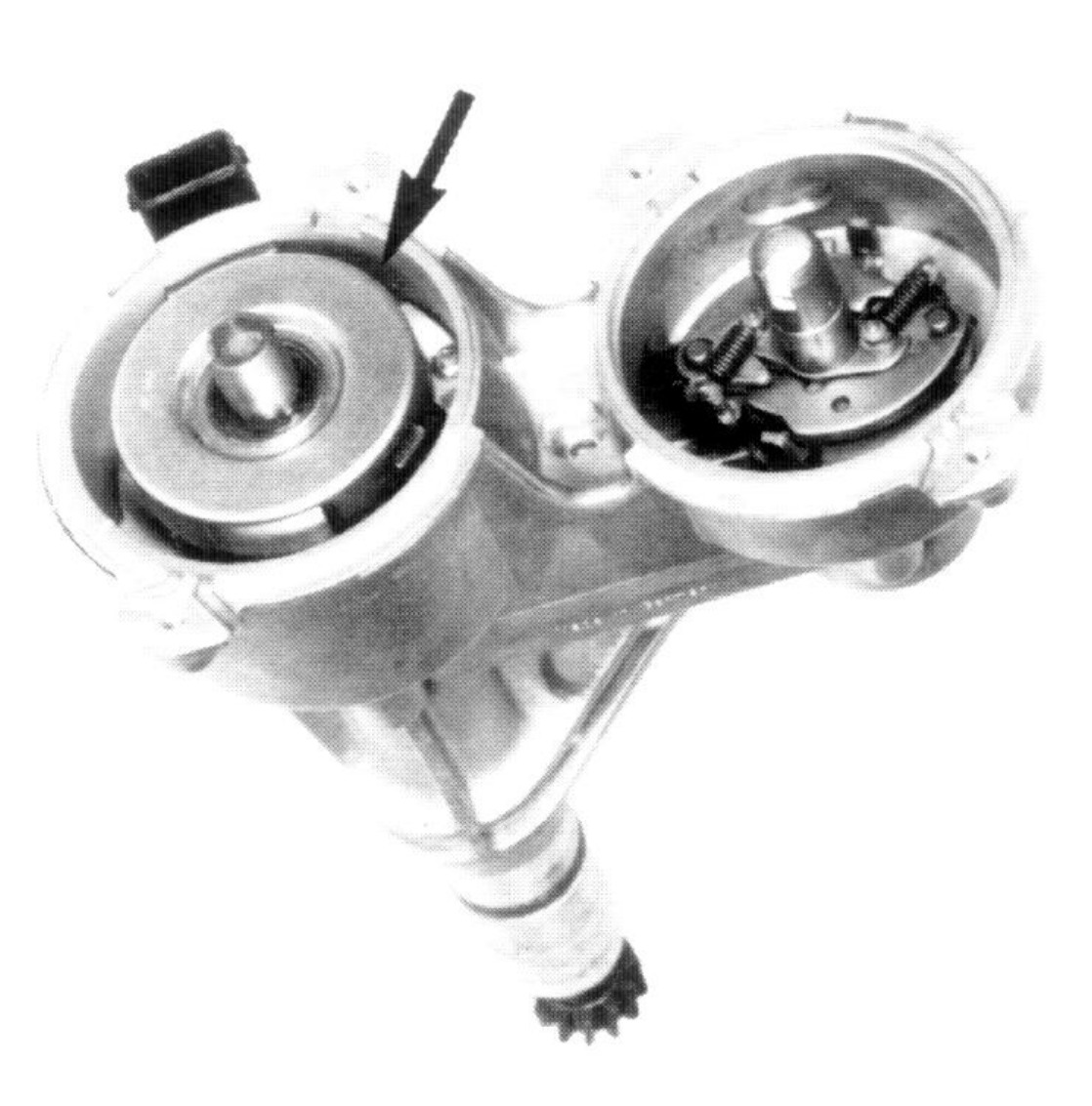Each distributor rotor is guided by centrifugal weights depending on engine speed. This guarantees alignment between the distributor rotor and corresponding ignition contact in the distributor cover