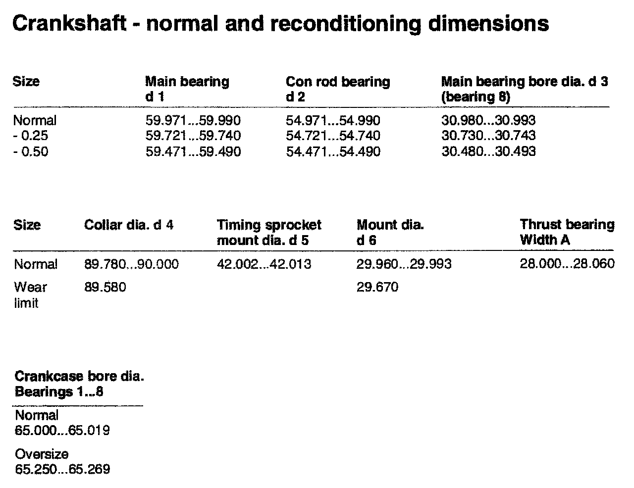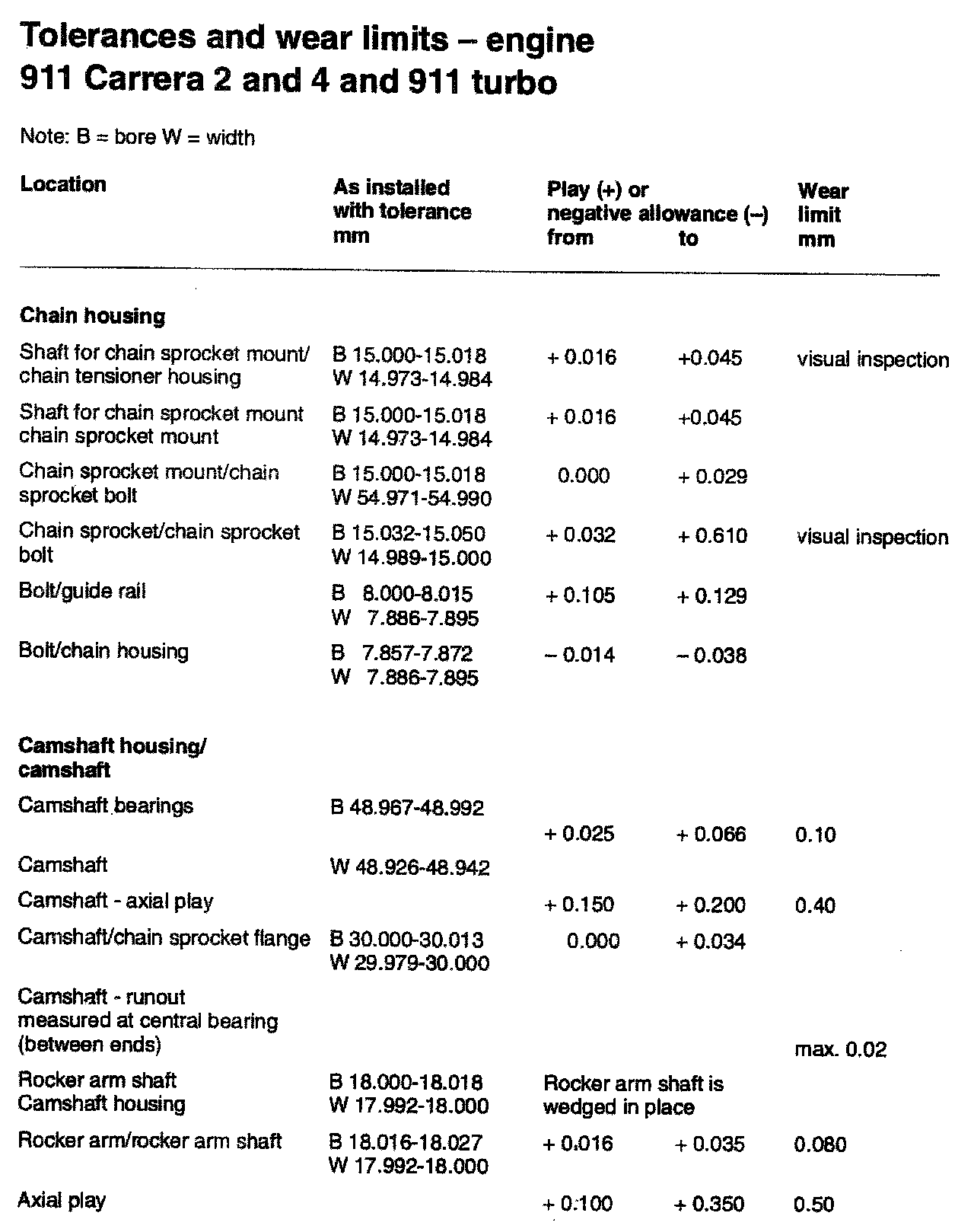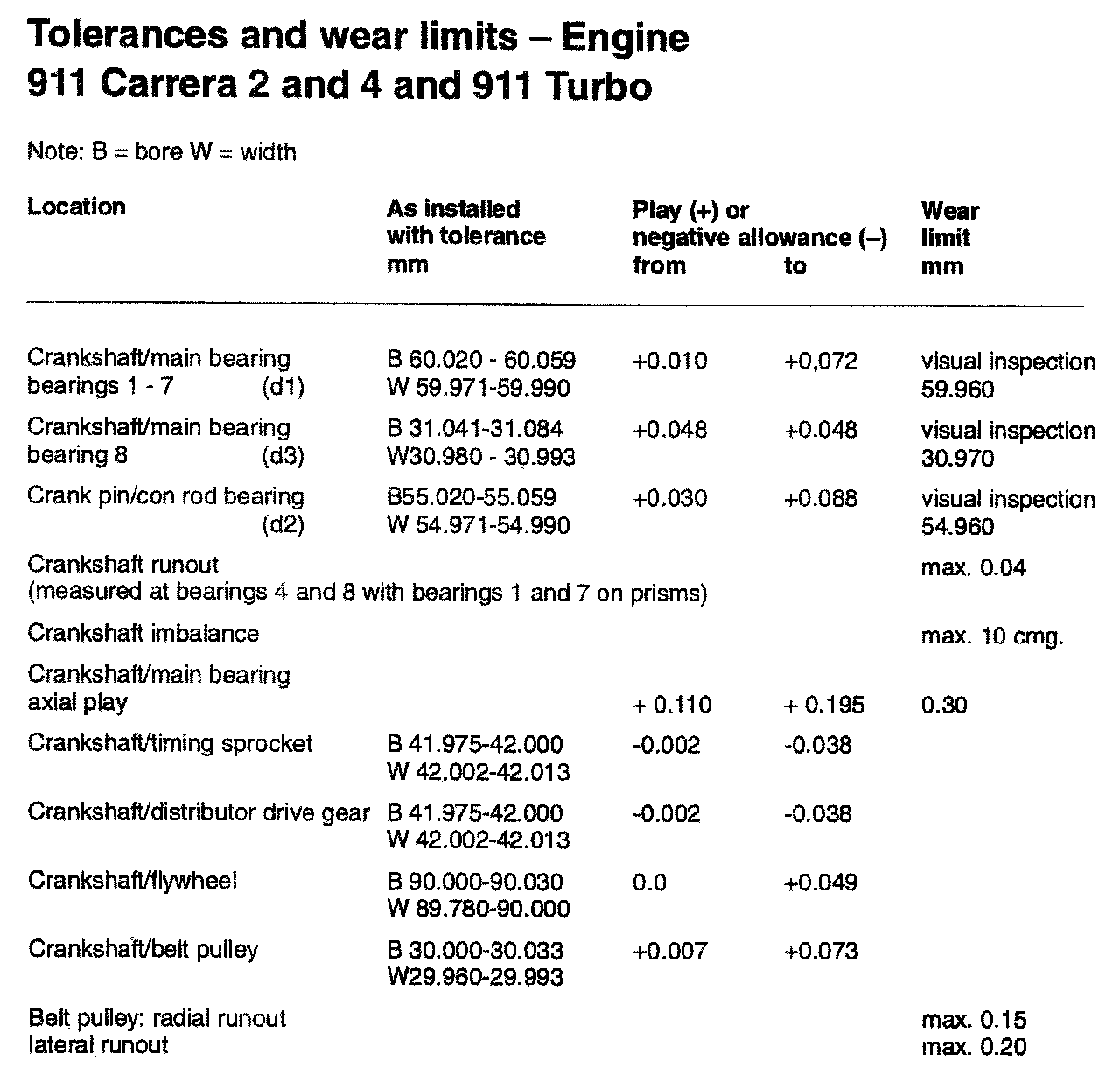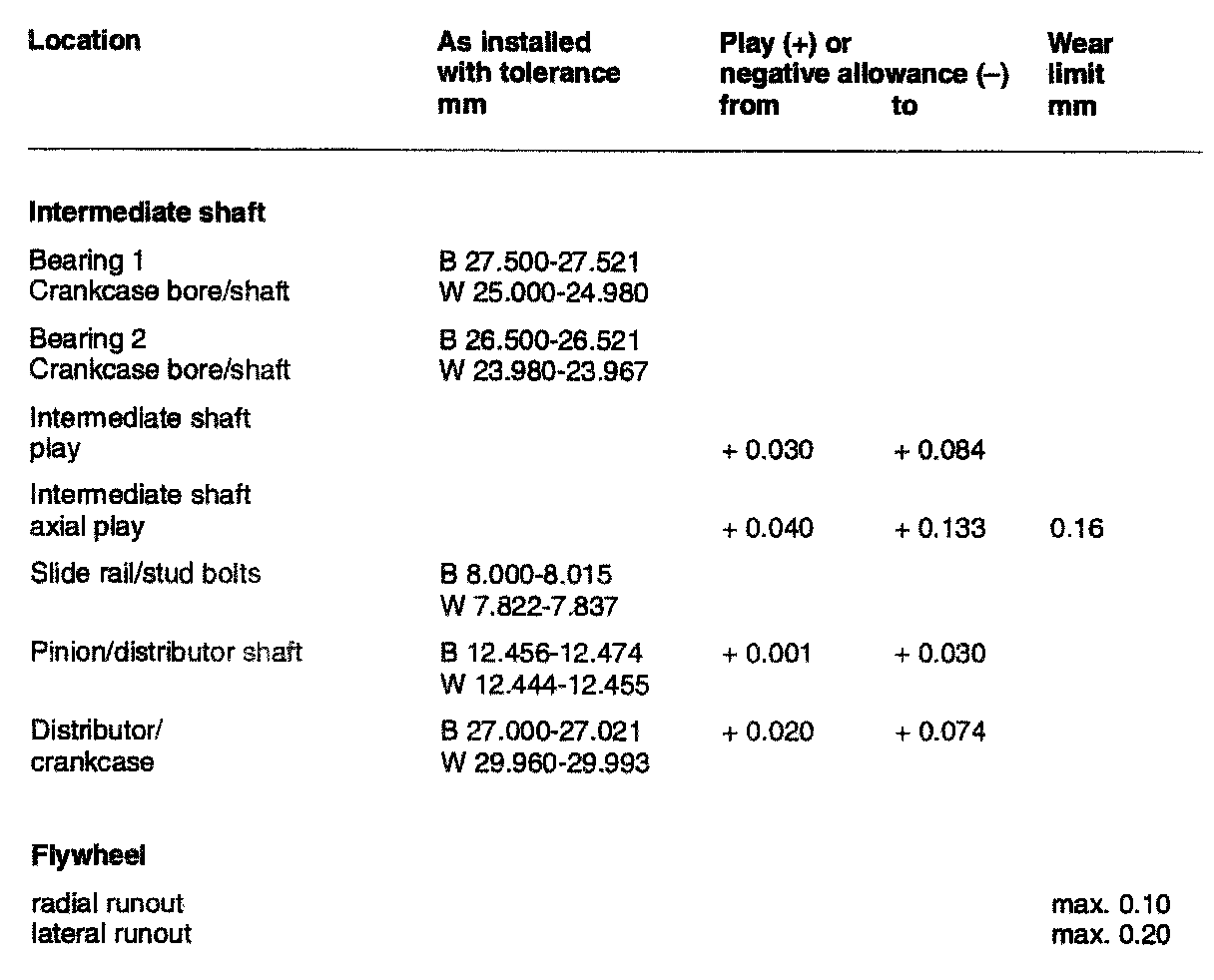 TOLERANCES AND WEAR SPECIFICATIONS