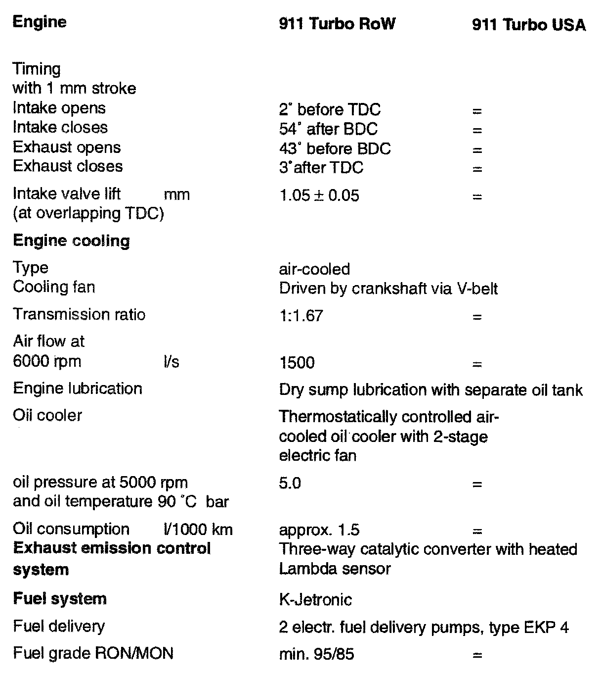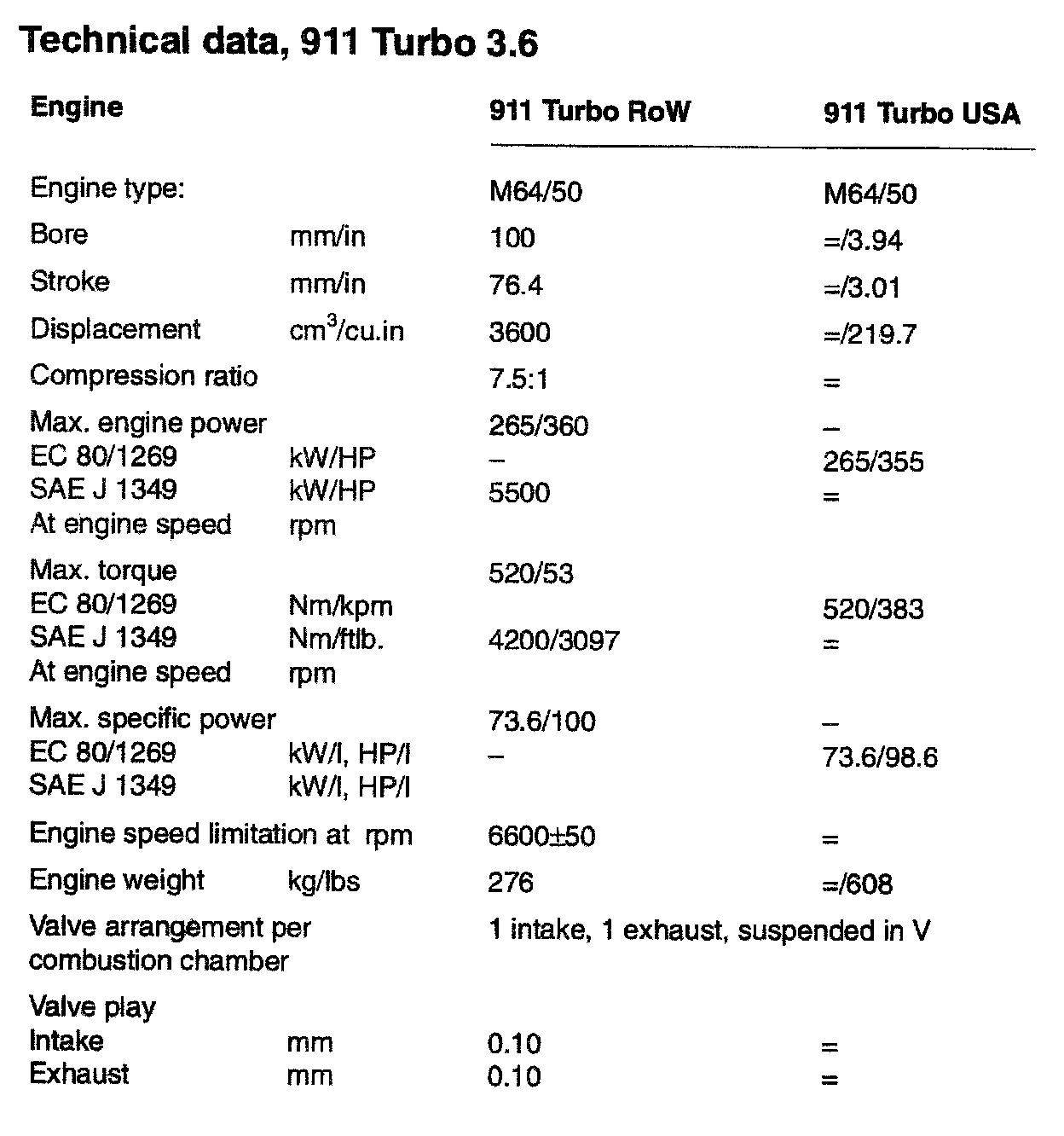 911 Turbo F6-3600cc 3.6L SOHC Turbo