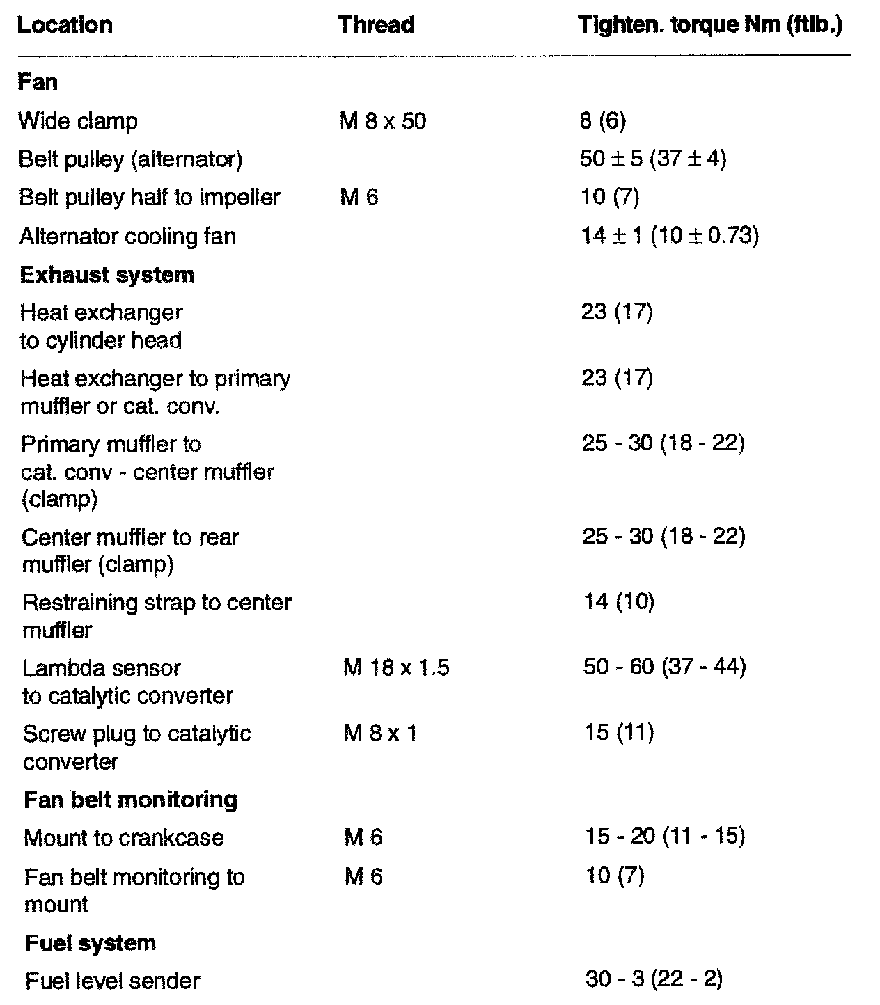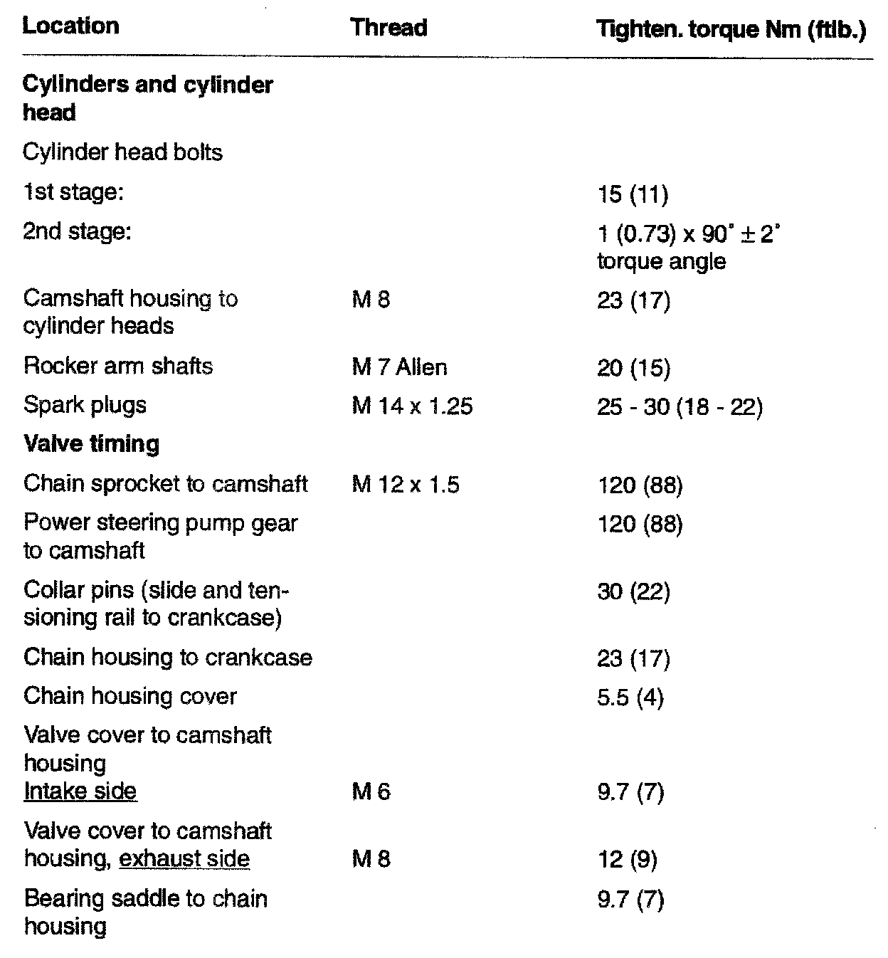 TIGHTENING SPECIFICATIONS