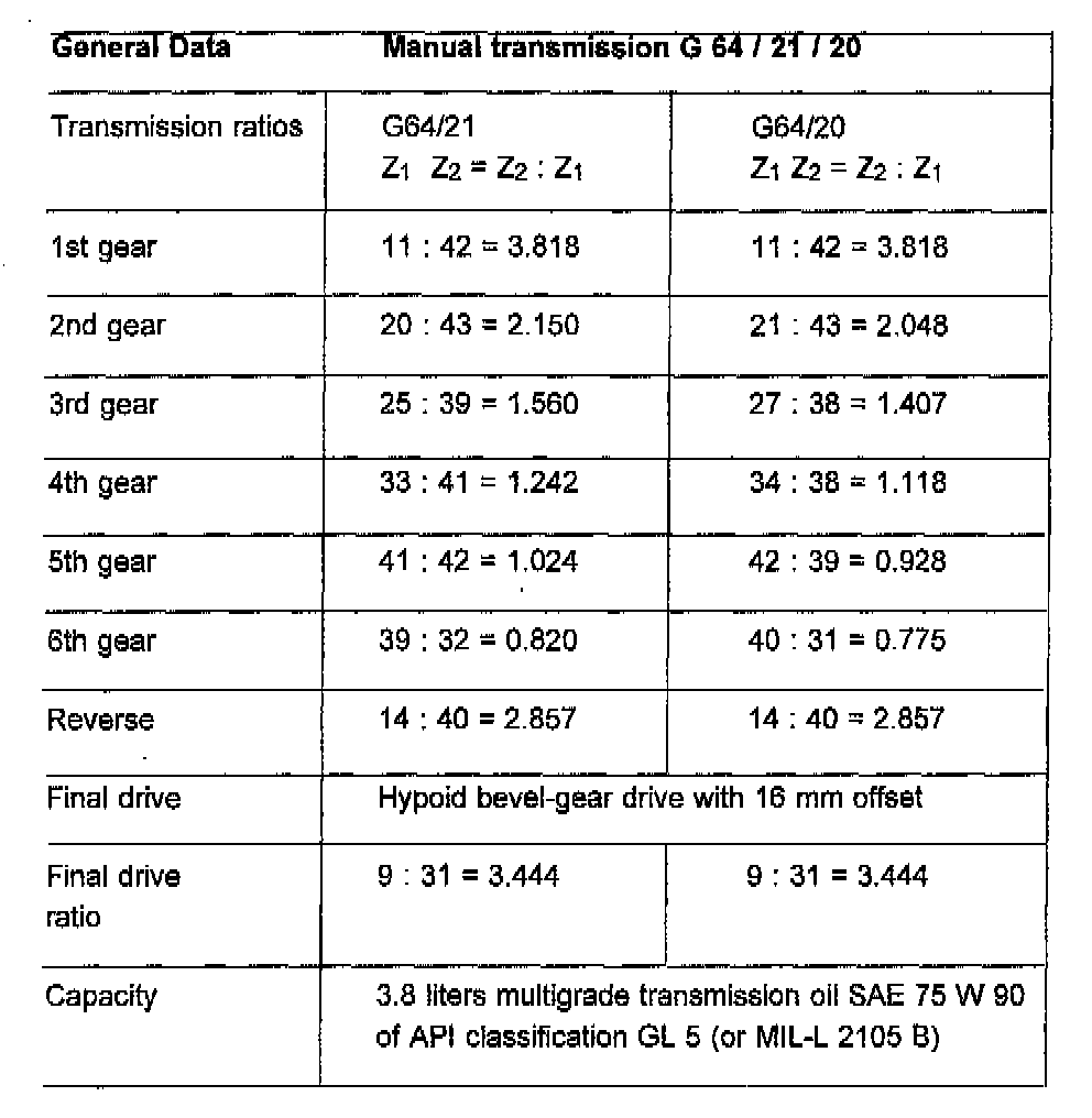 To locate a gear ratio for a specific transaxle, refer to the tables below
