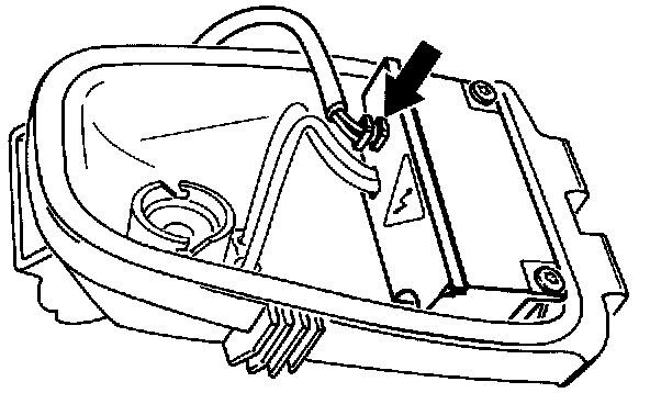 1. Remove headlight housing. Fold back retaining bracket on headlight housing and remove lid with integrated trigger device.