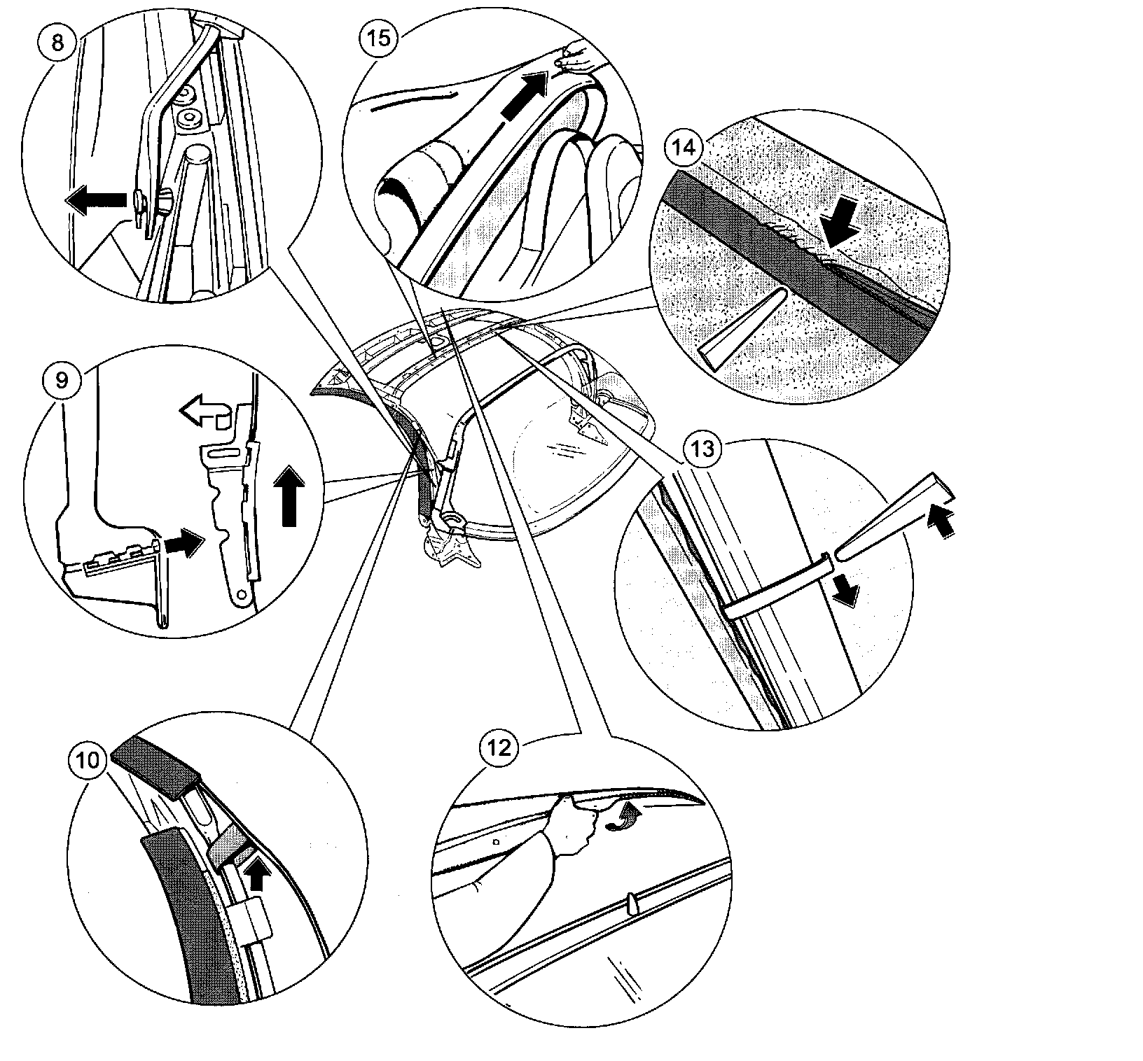 - Pull the rubber section out of the profile strip of the tension bow and detach the convertible-top end piece from the tension bow.