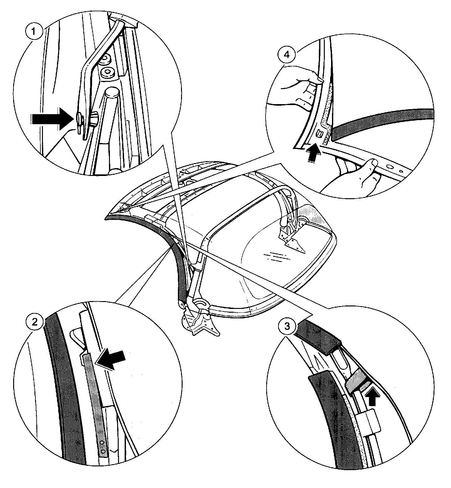 - Refer to Replacing convertible-top frame (conversion measure at tensioning bow for the tension strap and the roof liner on vehicles produced up to 12.04.2000).