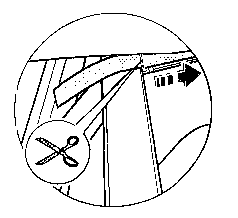 b. For vehicles and convertible-top coverings with extended tightening strips on the left and right, cut off the tightening strips flush at the tension strap.