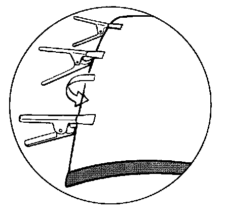 - Clamp the outer pull strip of the convertible-top covering behind the leaf spring.
