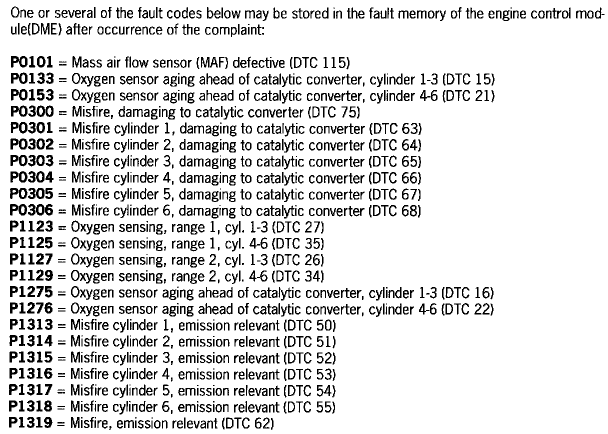 Fault code P0101 (DTC 115) is displayed alone or with several of the aforementioned codes in the fault memory.