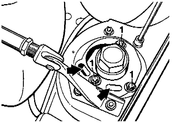 - Three bolts and nuts (no. 1) and two slots (arrows) in the upper part of the mount are used to change the camber.