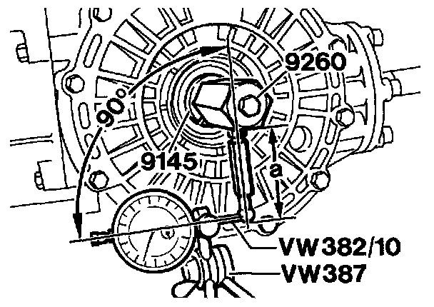 9. After turning the ring gear a further 90° each, repeat measuring procedures three times. The measured values must not deviate from one another by more than 0.05 mm.