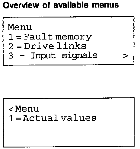 Actual values with "Actual values" menu
