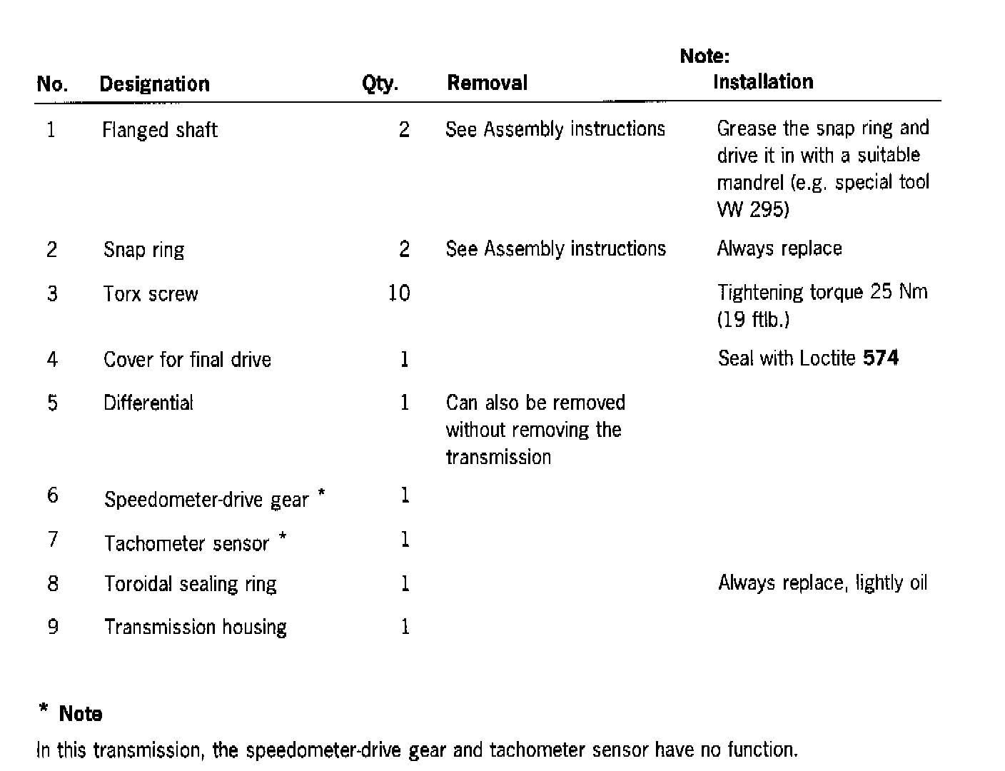 Instructions for removal and installation (transmission G 86)
