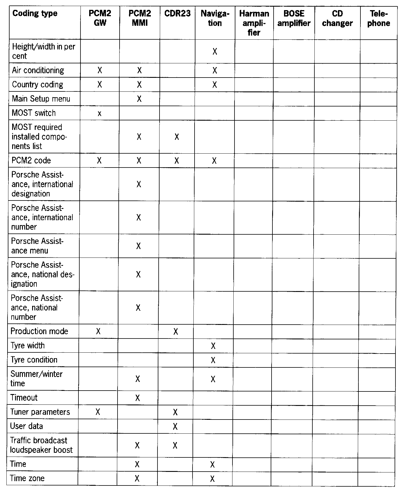 coding The PCM2 MMI corresponding to the vehicle type can be coded using this menu item.