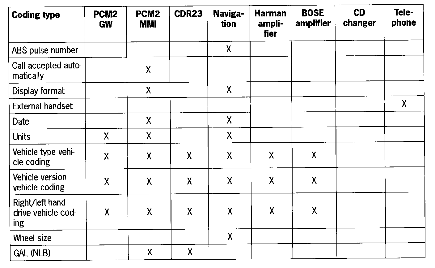 - When the PCM2 is replaced, the coding must be performed in accordance with the connected MOST control modules.