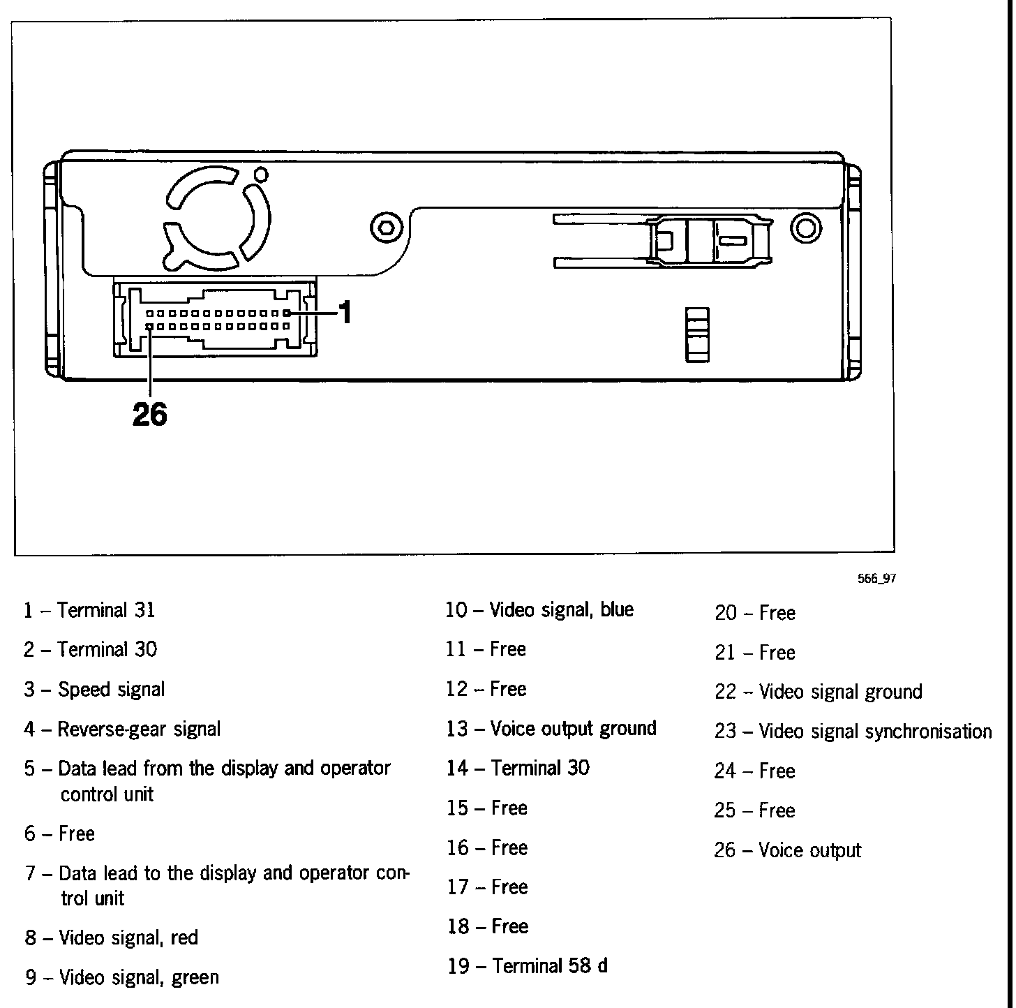 Connector Pin Assignment, Navigation Unit