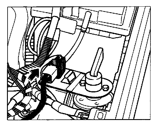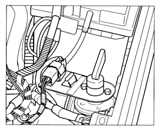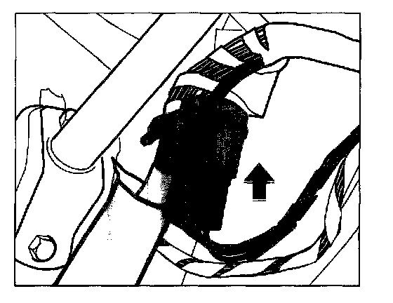 4. Lay the 6-pin plug under the right cowl panel cover and connect the plug to the 6-pin plug located under the right dome strut. Fasten the plug connection to the wiring harness with a tie wrap.