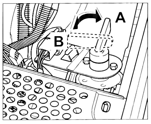 - Turn the red actuation toggle counter-clockwise and remove, status -B-.