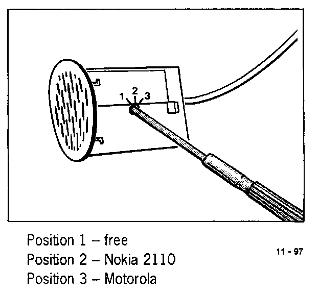 NOTE: There is an adjustment possibility on the hands-free microphone for adopting it to the telephone system installed in the vehicle. The following positions must be set for the Nokia 2110 or Motorola: