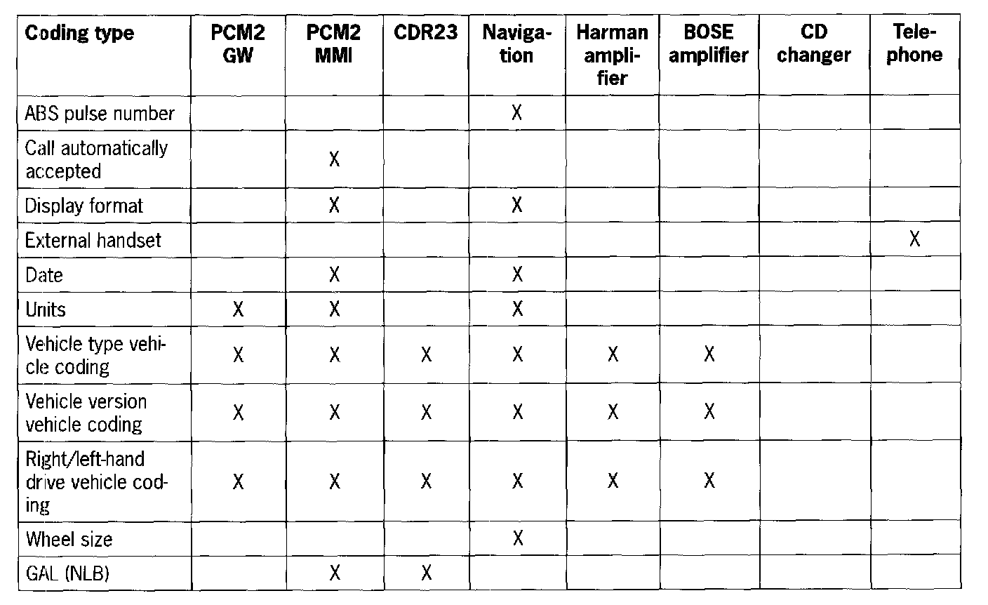 coding Under this menu item, the PCM2 MMI corresponding to the vehicle type can be coded.