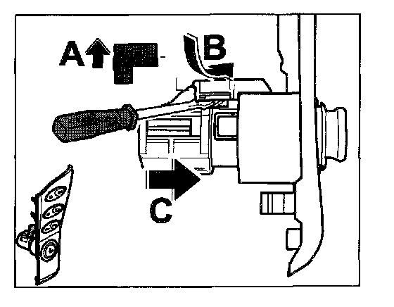 2 - Press the lights bracket -arrow B- out to the side with a narrow screwdriver.