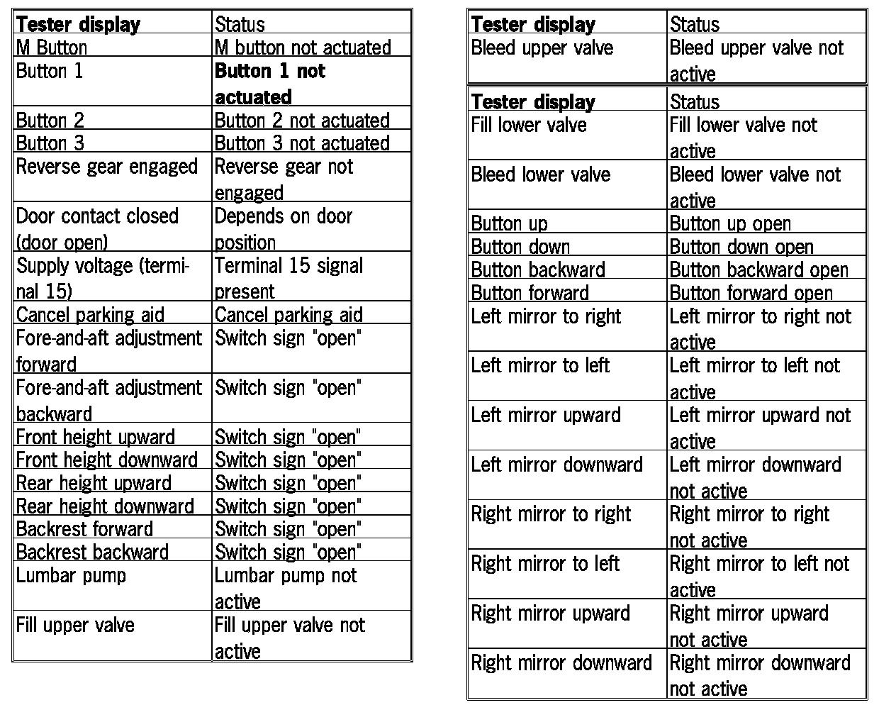 - Switch for memory seat adjustment not actuated