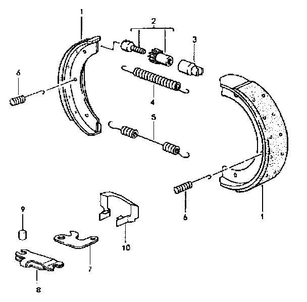 5. Remove compression springs, adjustment fixture and return spring. Remove parking brake shoes and return spring.