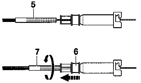 4. Loosen snap ring at adjusting piece (displace it) and push threaded part through along with cruise-control cable.