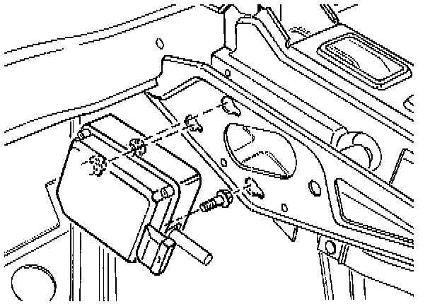 The cruise-control actuator is fastened with three screws to the pedal bearing block above the accelerator.
