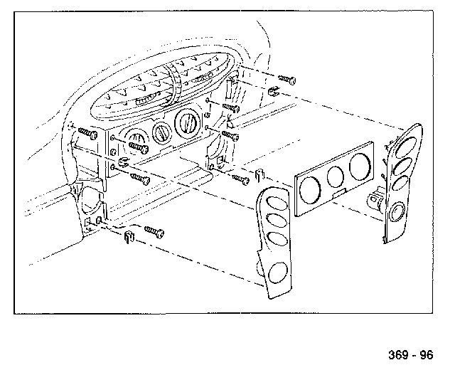6. Remove radio and heating and fresh-air control. Unclip switch trim on the left and right. Disconnect electrical plug connection. Loosen centre of fixing frame and remove.
