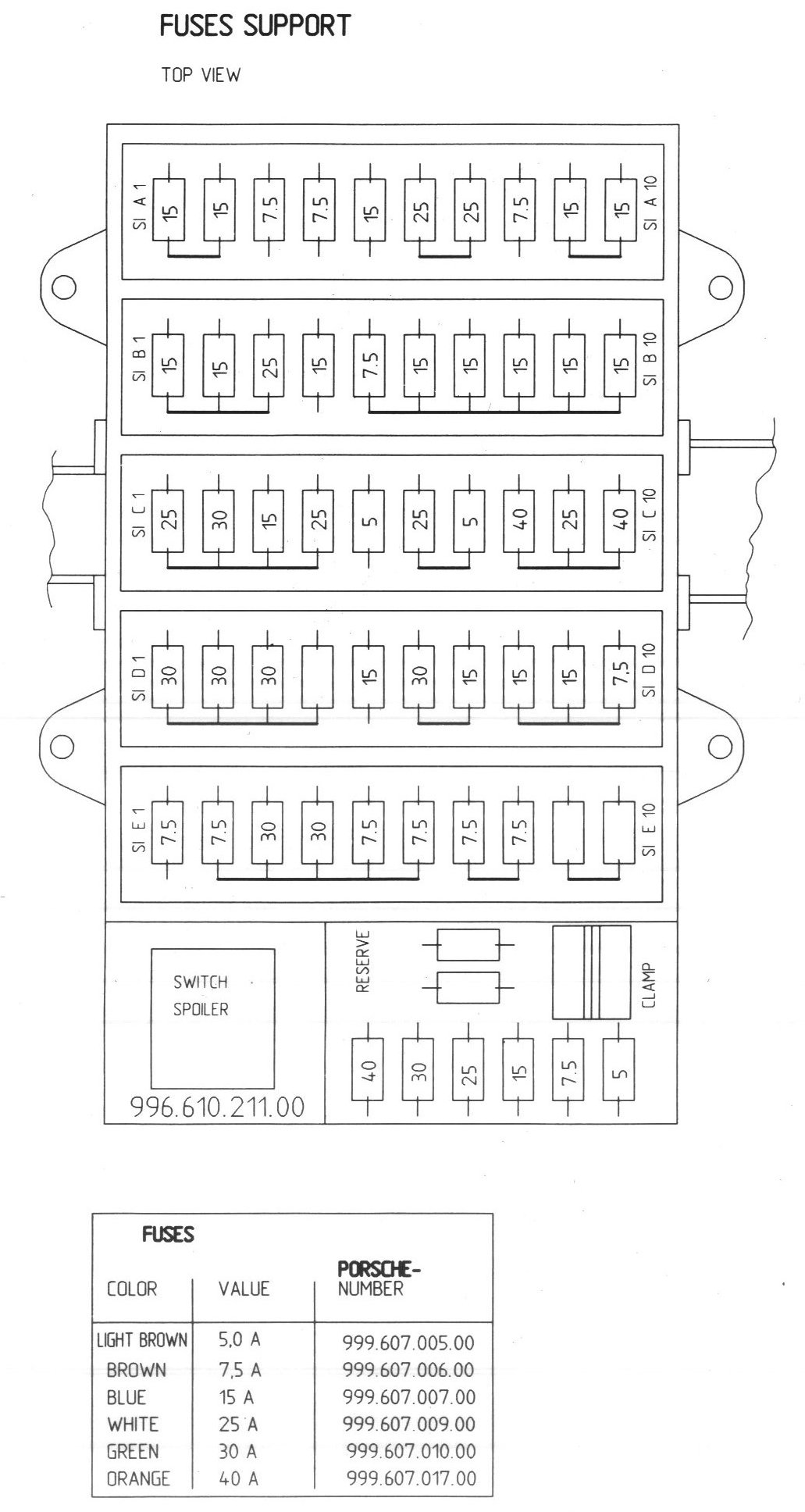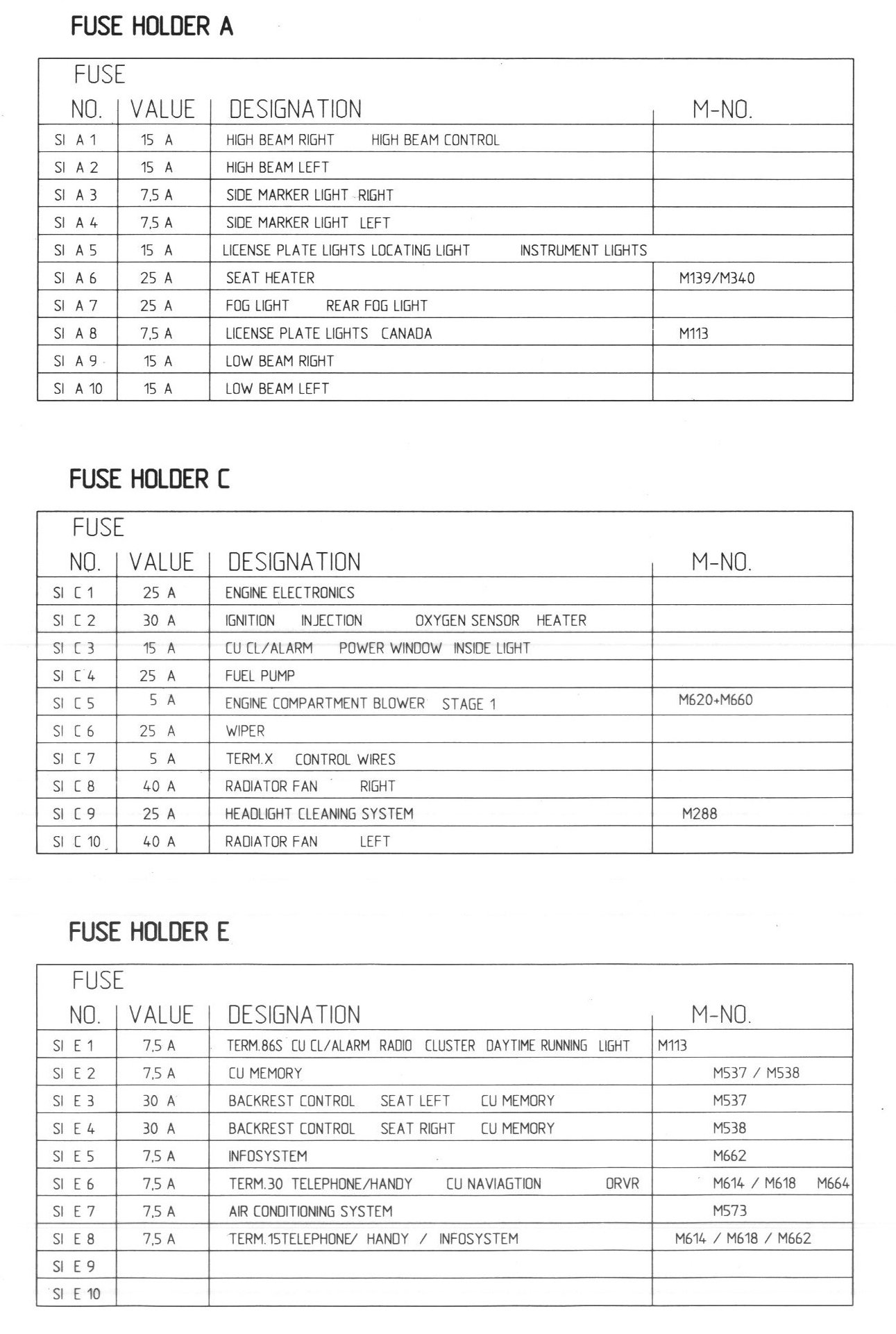 Fuse Holders A, C, E: