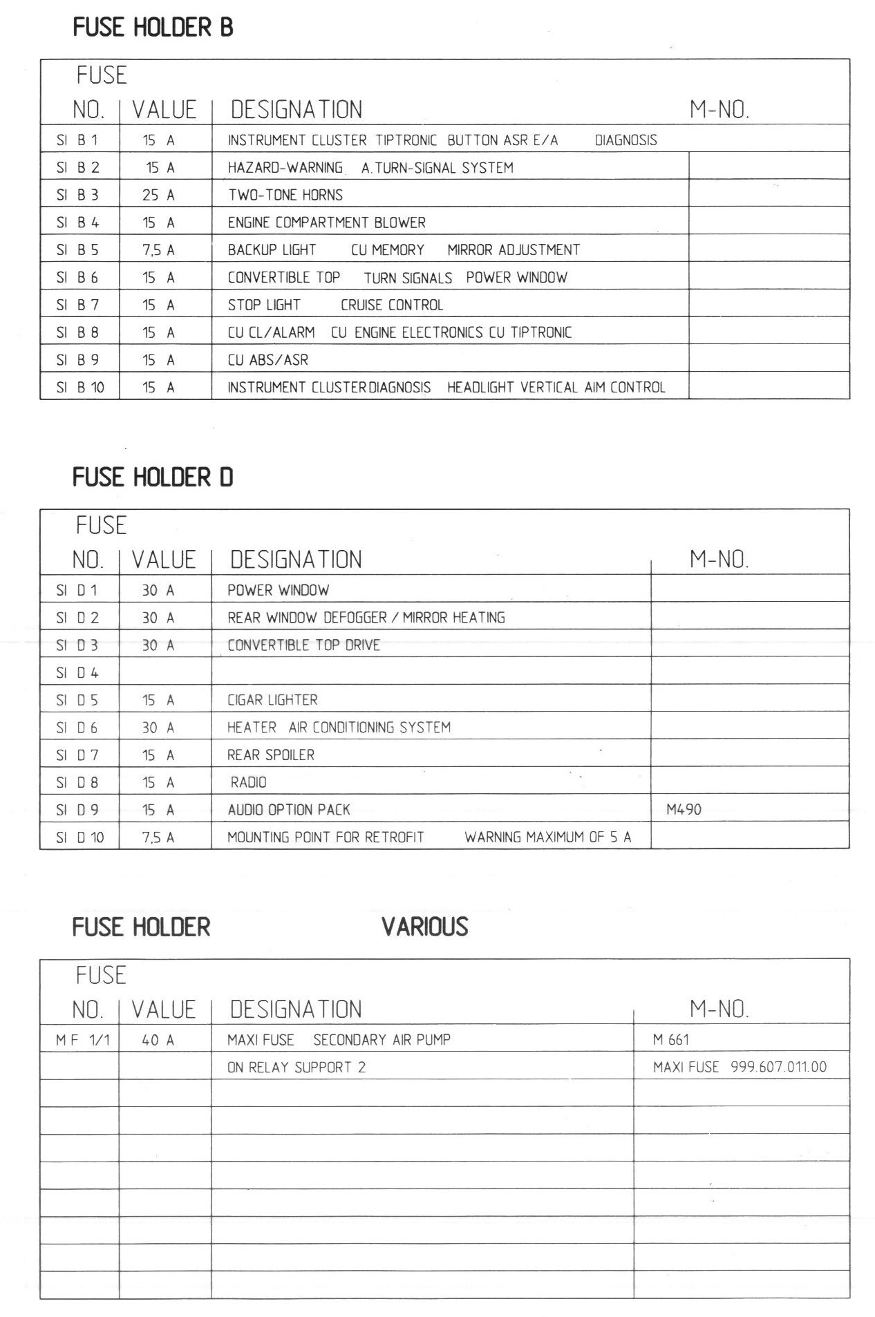 Fuse Holders B, D, & Various: